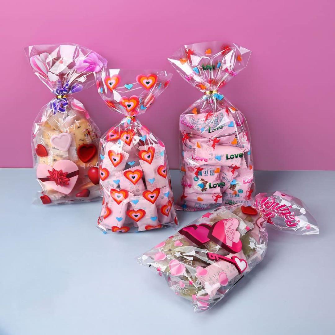ラッピング袋 200枚 4種類 バレンタイン ラッピング袋 透明度高い ハート柄 ラッピング・包装。