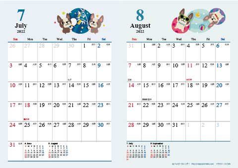 2022年07-08月カレンダー 書込欄付きKF STUDIO。