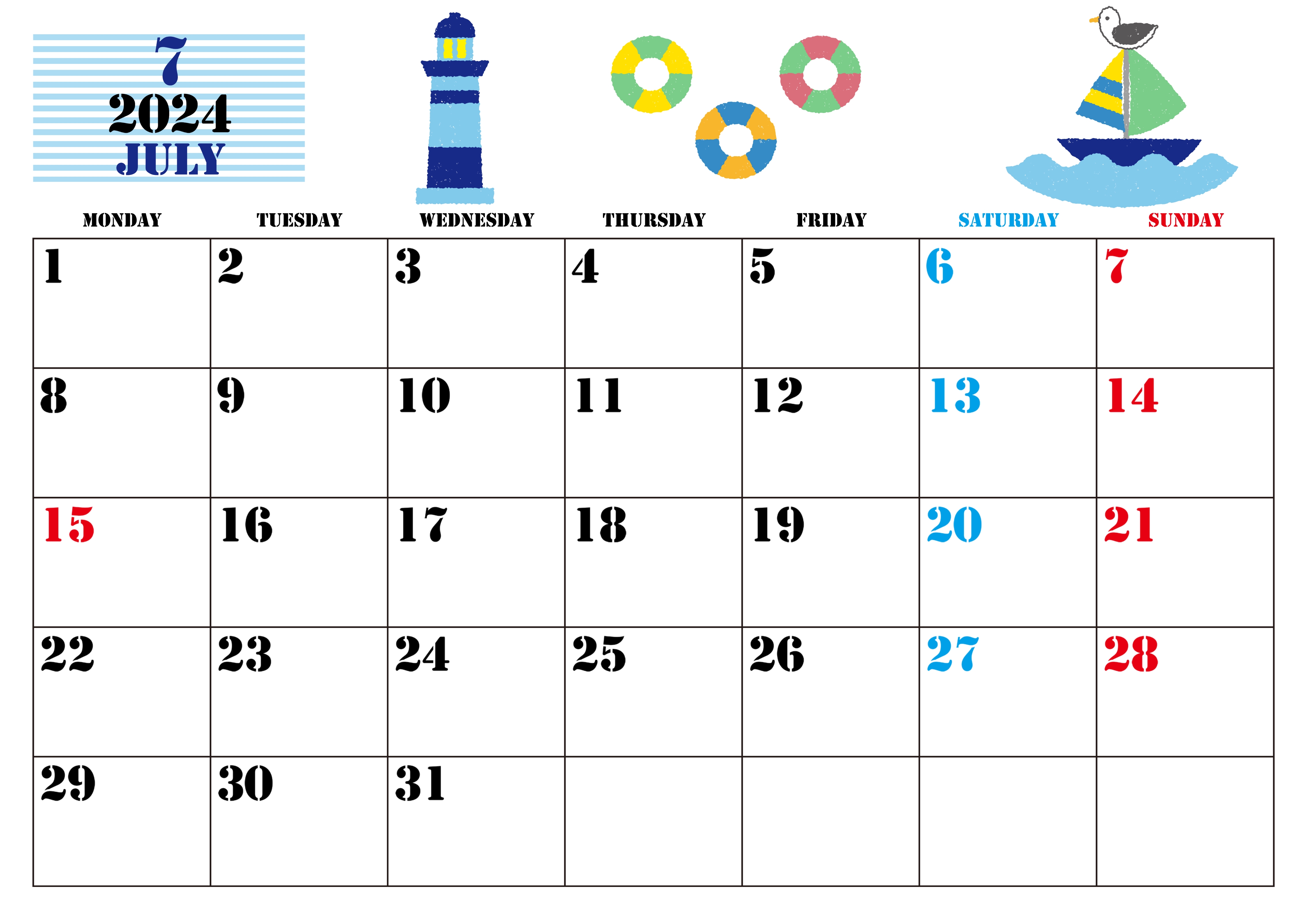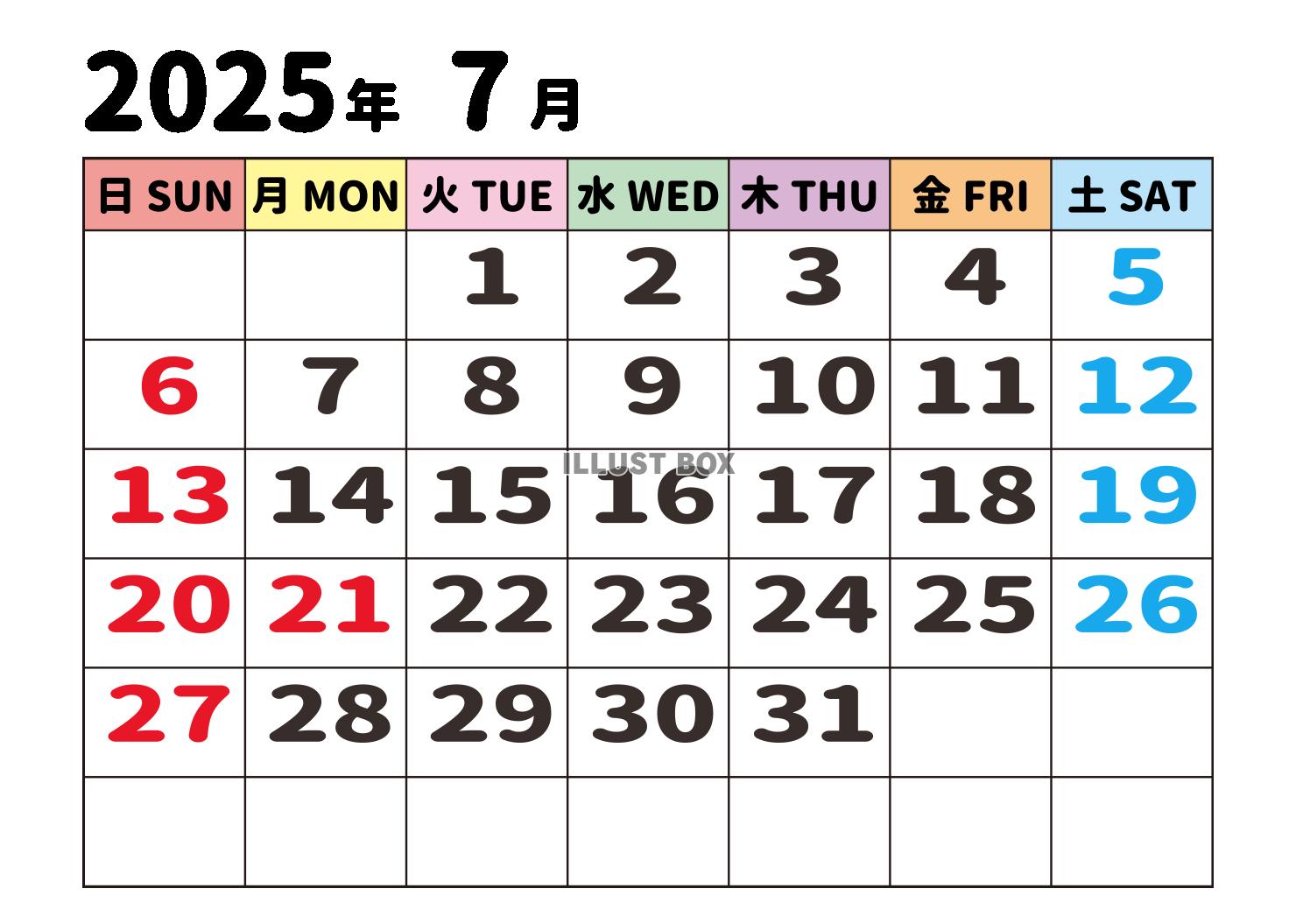 2025年7月カレンダー月曜始まりのイラスト素材124126138- PIXTA。