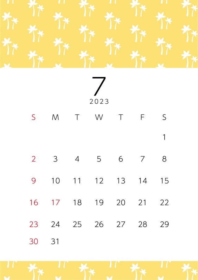 2023年カレンダー7月 シンプルな季節のデザイン ヤシの木無料イラスト素材素材ラボ。