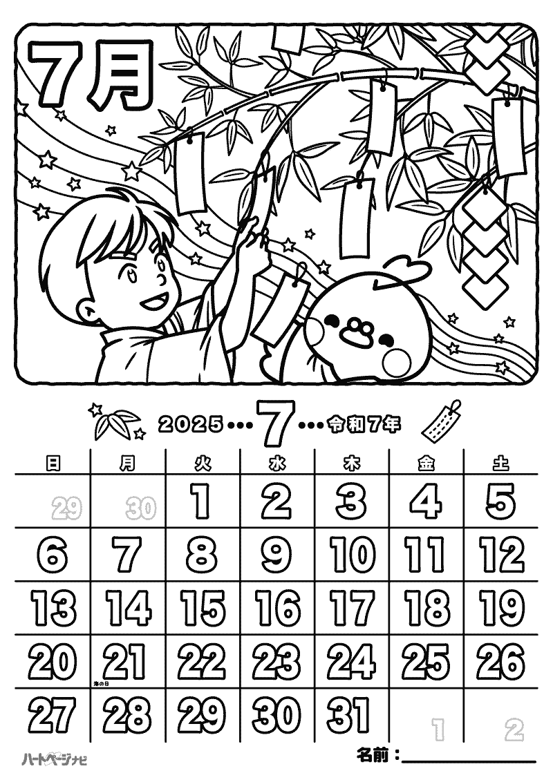 かわいい7月カレンダー イラスト・フリー素材なら「シンテリ」。