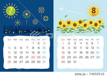 祝日改正版 2021年7月・8月 イベントのカレンダーのイラスト素材74659510- PIXTA。