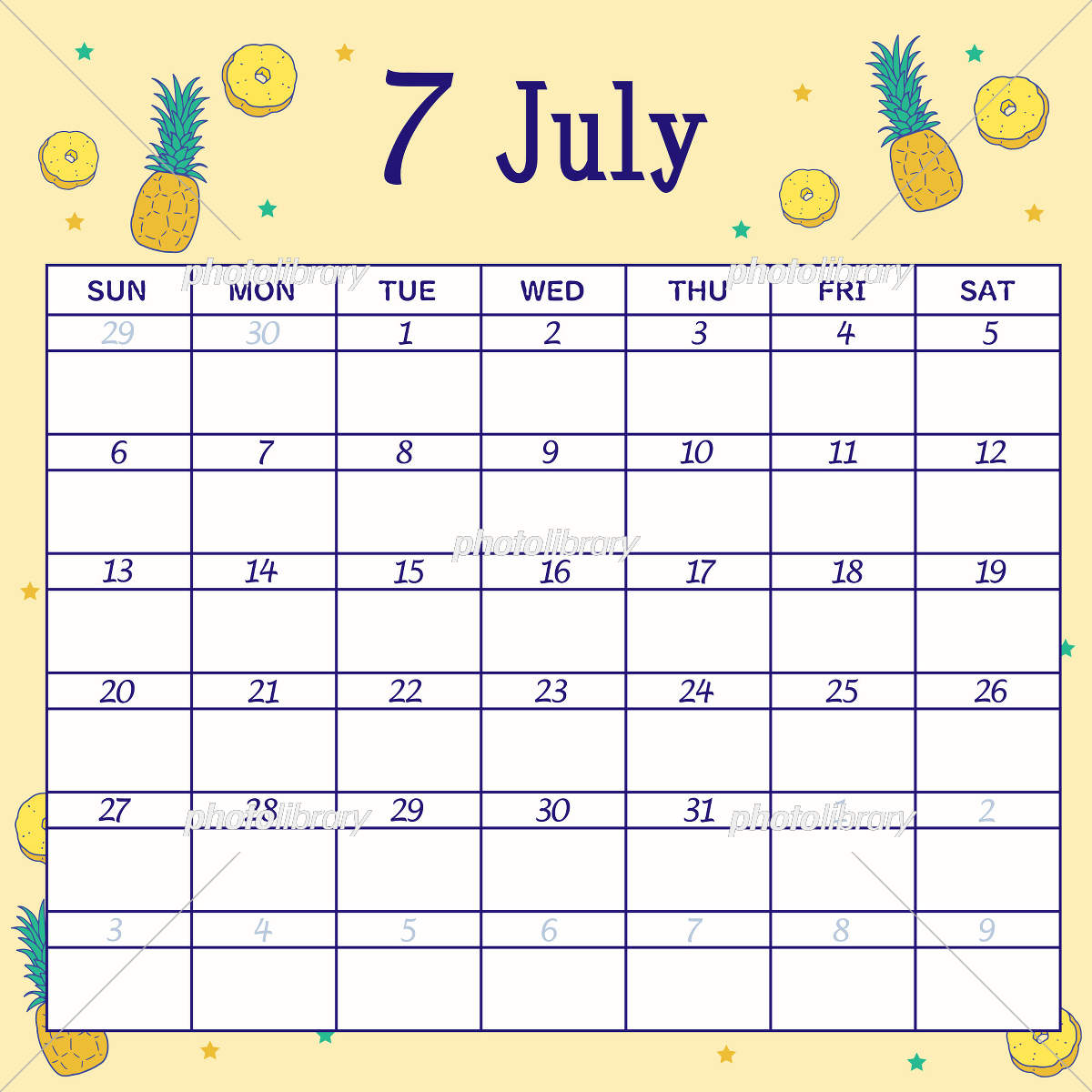 手描き風カレンダー素材 7月 イラスト素材6574083- フォトライブラリ。
