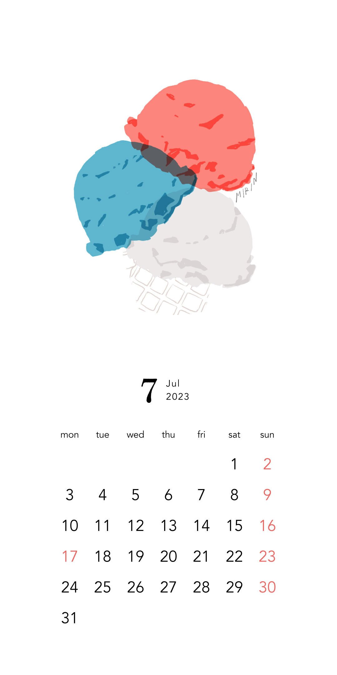 7月カレンダーおくちはる。