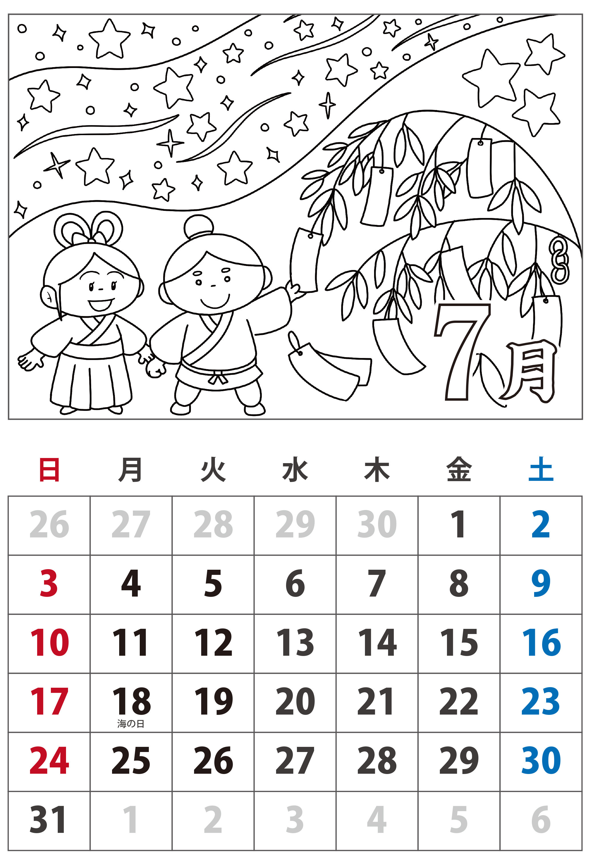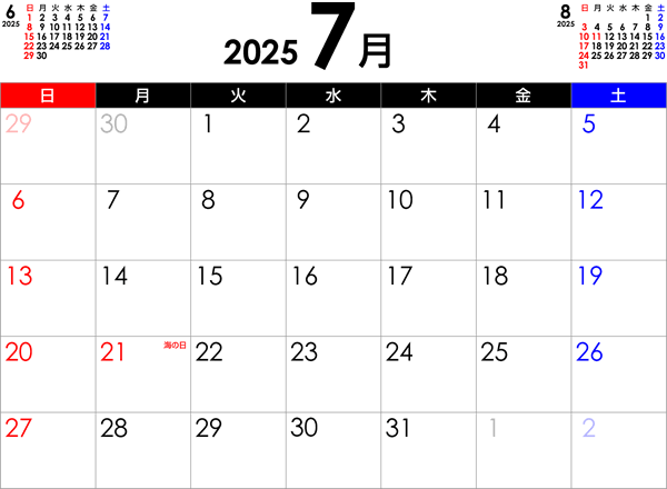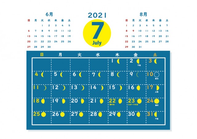 月 カレンダー2021年7月無料イラスト素材素材ラボ。