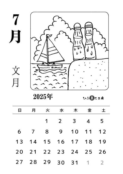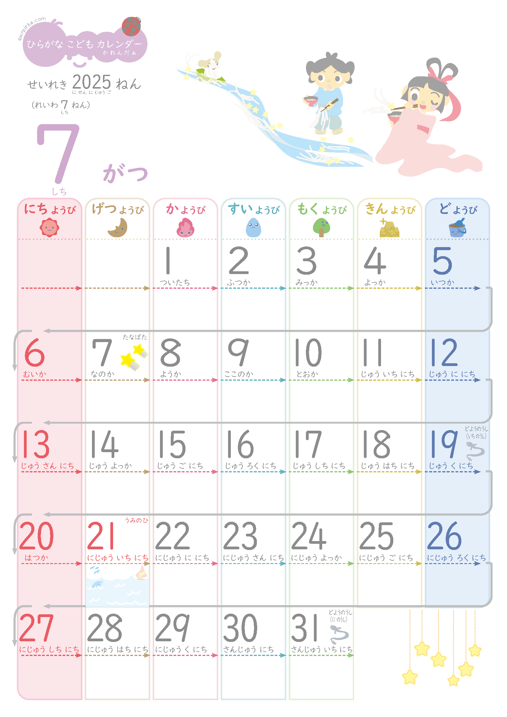 2025年7月ひらがなこどもカレンダー – Sirpirka。