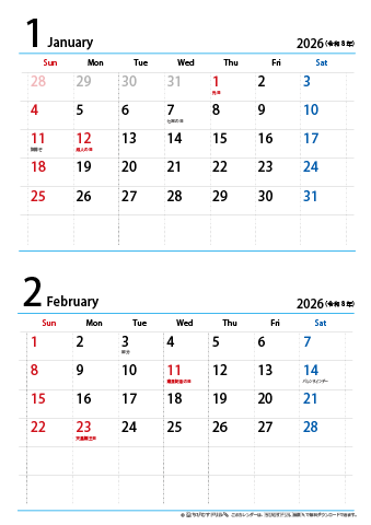 2025年 令和7年月間カレンダー・無料ExcelテンプレートA4タテ・1ページ2ヶ月・無地・1ページPlusプロジェクトマネージャーオフィシャルページ。