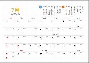 2023年 令和5年 7月カレンダー!エクセルなど無料ダウンロードOK!暦職人。