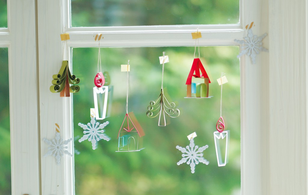 色画用紙で作るクリスマスモチーフのペーパーオーナメントの作り方はんどカフェ。
