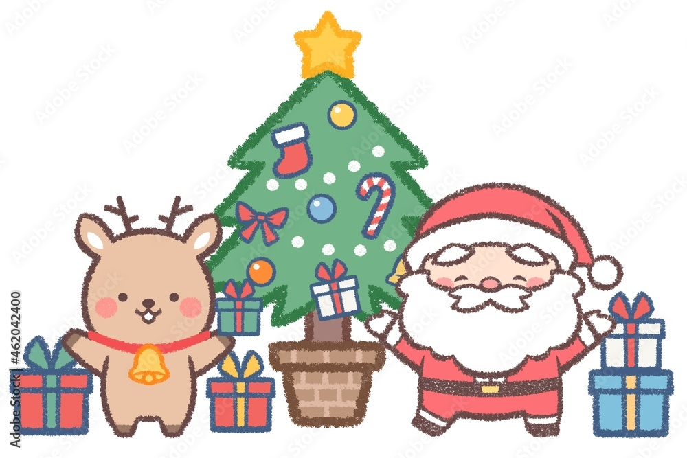 クリスマス サンタとトナカイとクリスマスツリーのイラスト素材58501310- PIXTA。