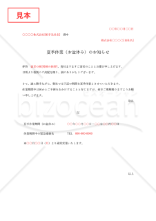 夏季休業 お盆休み のお知らせ 例文付き bizocean ビズオーシャン。