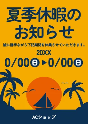 夏期休暇のお知らせイラスト入り張り紙のテンプレート・登録不要で無料ダウンロード - 登録不要のフリーテンプレート。