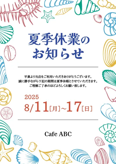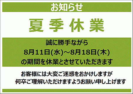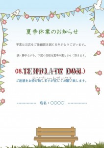 夏季休業の張り紙&お知らせ」の無料テンプレートをダウンロード - 自由が丘スタイル。