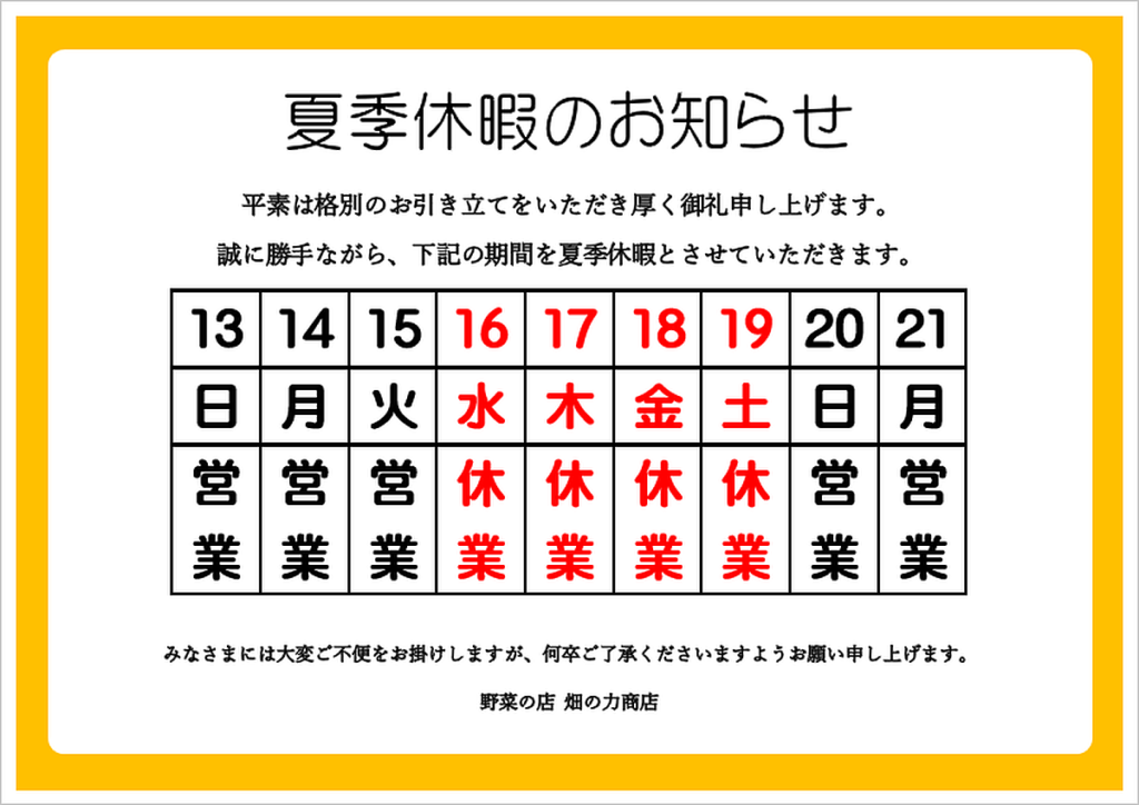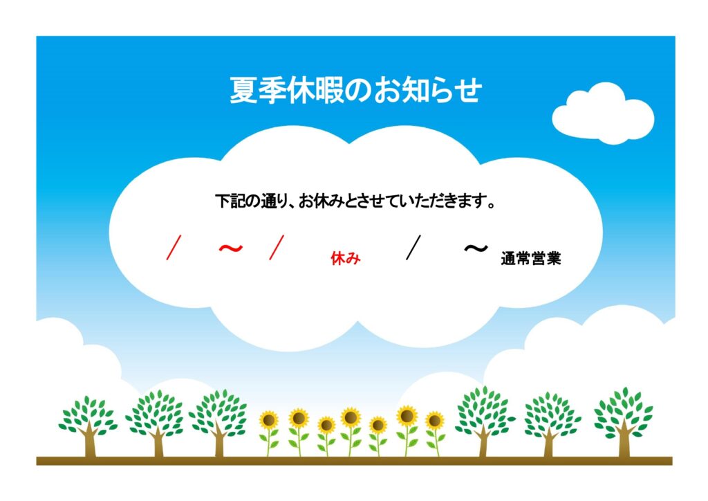 夏季休業のお知らせ張り紙のテンプレートを無料でダウンロードExcel・Word基礎講座とテンプレート。