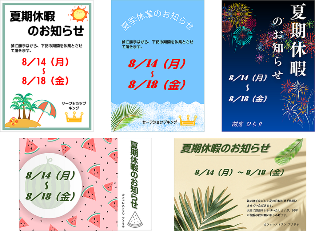 夏季休暇のお知らせ テンプレート 無料 登録不要 (257 無料写真)