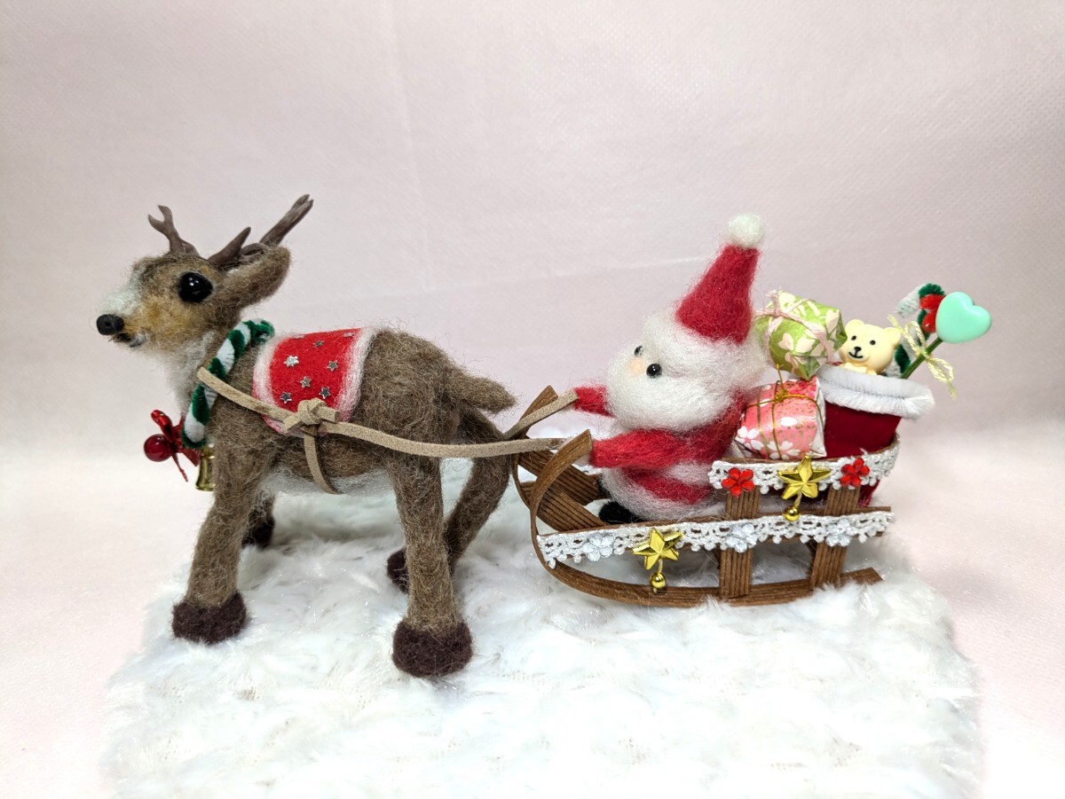 羊毛フェルト サンタクロース トナカイ クリスマス ミニチュア ドールハウス クラフトバンド ハンドメイド インテリア。