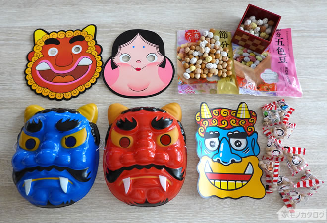 100均ダイソーの節分グッズ商品一覧。鬼のお面と節分豆が100円 2020年購入品。