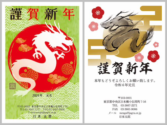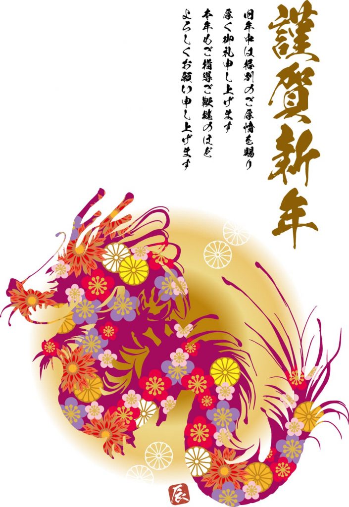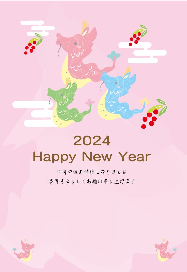 2024年 令和6年 辰年の年賀状 年賀状と無料イラスト。