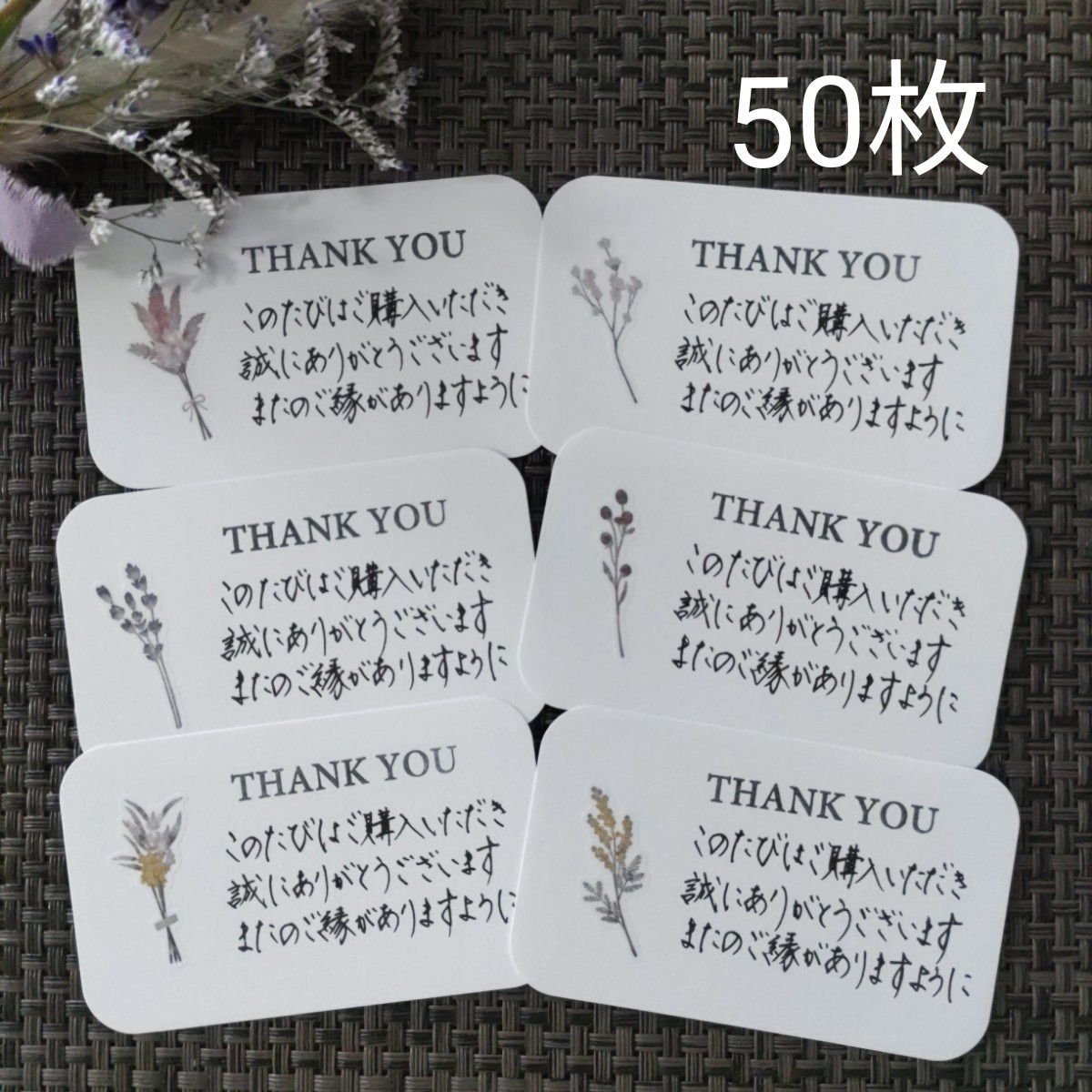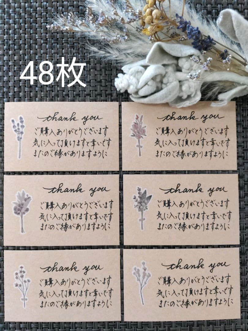 サンキューカード☆手書きメッセージカード48枚 クラフトカード ドライフラワ。