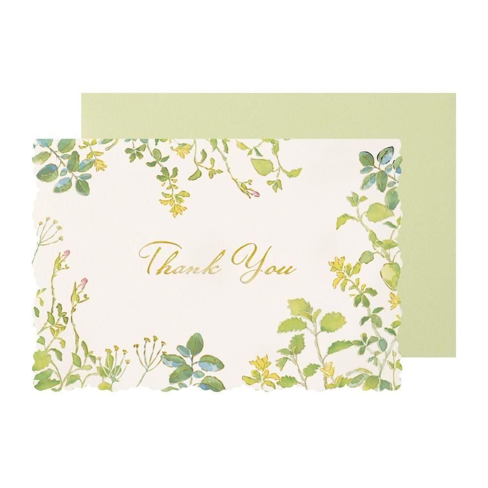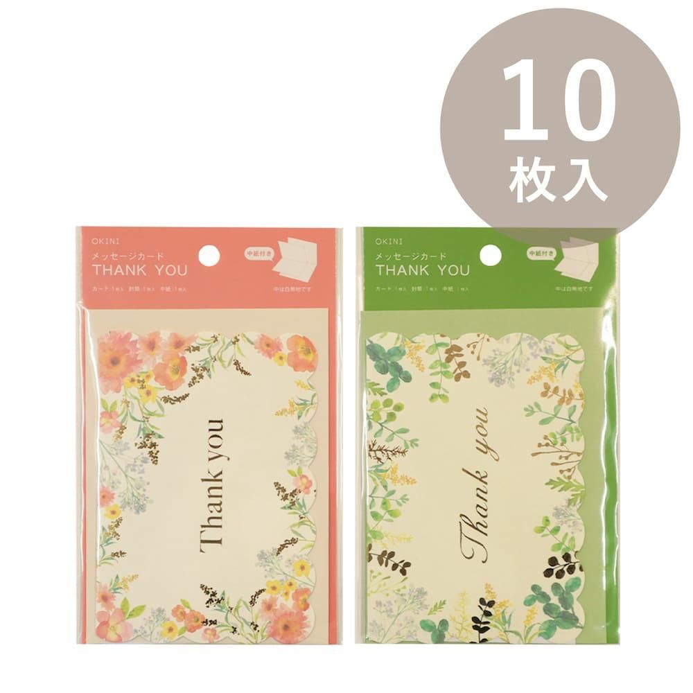 OKINI メッセージカード 10枚入 サンキューボタニカル水彩の花柄と箔押しお礼カード - 包む オンラインショップ。