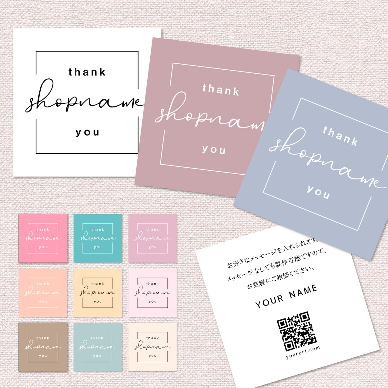 Thank youカード 正方形デザイン サンキューカード ショップカード メッセージカード 約8×8cm30枚: ビーズアンドパーツ -通販 - Yahoo!ショッピング。