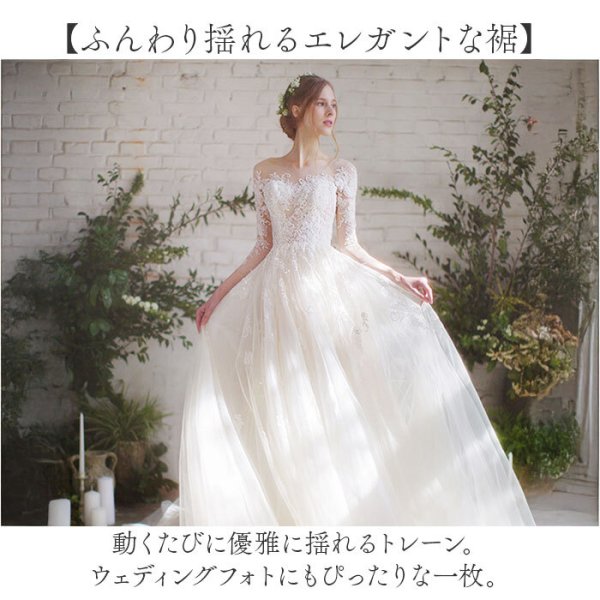 ウェディングドレス 袖あり Aライン 通販 ウエディングドレス ブライダルドレス トレーン ドレス レディース パーティドレス 白 ホワイト ロング ドレス 七分袖 お色直し 花嫁 結婚式 二次会 披露宴 前撮り パーティー おしゃれ かわいい オシャレ -BACKYARD FAMILY。