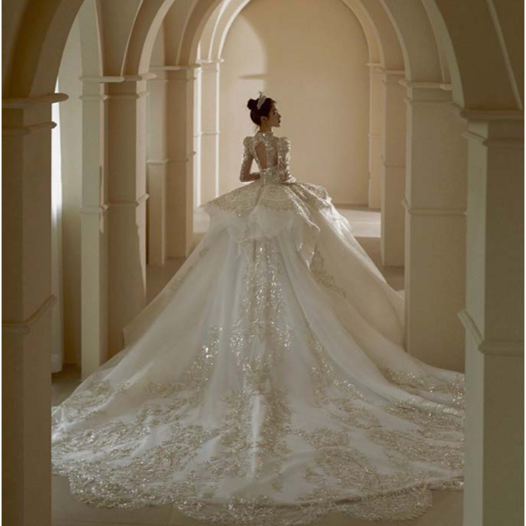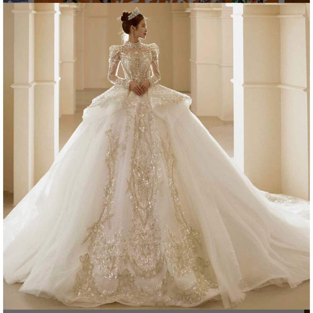 おしゃれ上級者に人気 プリンセスライン ウエディングドレス キラキラ ビジュードレス豪華ロングトレーン高貴結婚式K014 ドレスWeddingWorkShop 通販 18357416Creema クリーマ。