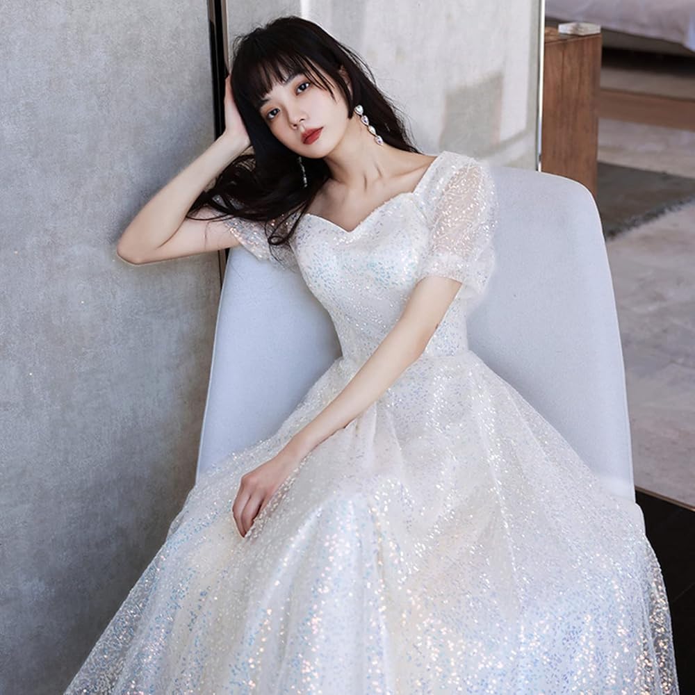 AmazonVANDROUPロング丈 ロングドレス キラキラ コンサート S 忘年会 ワンピース エレガント フォーマルドレス 演出舞台女子会 レディース パフスリーブ 撮影用 ホワイト 春 秋 シンプル フォーマル ウェディングドレス スカートフォーマルドレス 通販。