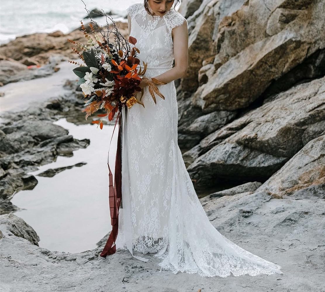 AmazonFiveen前撮り ドレス ワンピース レース ウエディングドレス シンプル 結婚式 二次会 花嫁 食事会 披露宴 ビーチロングドレス お洒落人気 エンパイアドレス 海外挙式 オーダーメイド可 XSフォーマルドレス 通販。