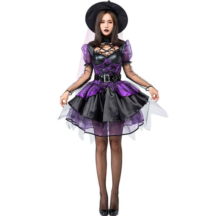 Amazonコスプレ 魔女 ハロウィン 仮装パーティー ウィッチ 魔法使い コスチューム ガール ハロウィン ワンピース 3点セット 女性用巫女 公演服 ホラー おばけ セクシー 変装 小悪魔コスチューム 魔法師 大人用 ハロウィン衣装 Halloween Witch おもしろ仮装紫色。