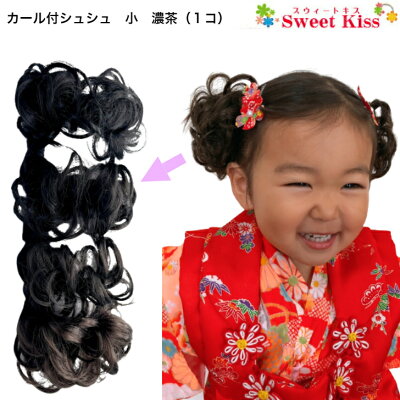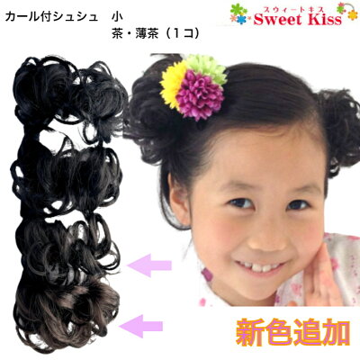 つけ毛 子供 付け毛 女の子 シュシュウィッグ 髪飾り キッズウィッグ 七五三 着物 ダンス 発表会 撮影 ガールズ・プチカール。