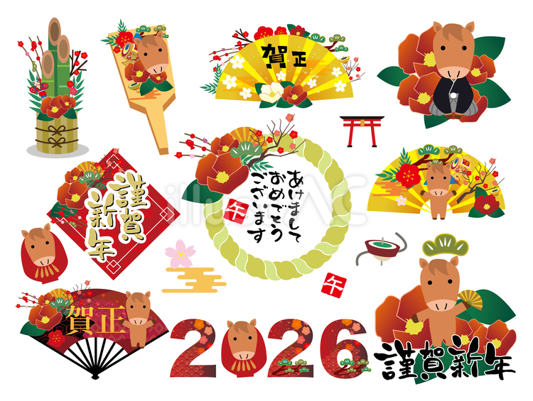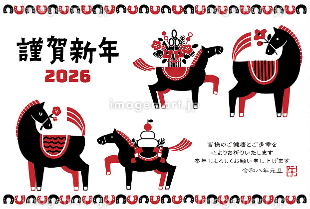 2026年 午年 年賀状テンプレートのイラスト素材114375298- PIXTA。