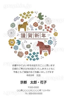 2026年 年賀状の無料テンプレート・デザイン・イラスト うま年・令和8年- ネット印刷グラフィック。