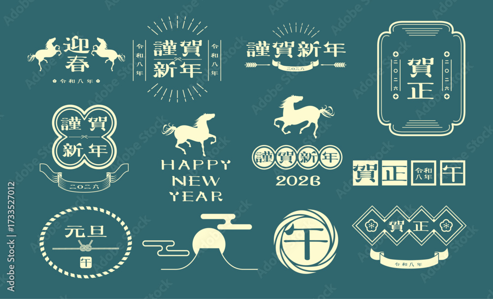 2026年・午年のかわいい年賀状 謹賀新年・和風デザイン のイラスト素材297054107- イメージマート。