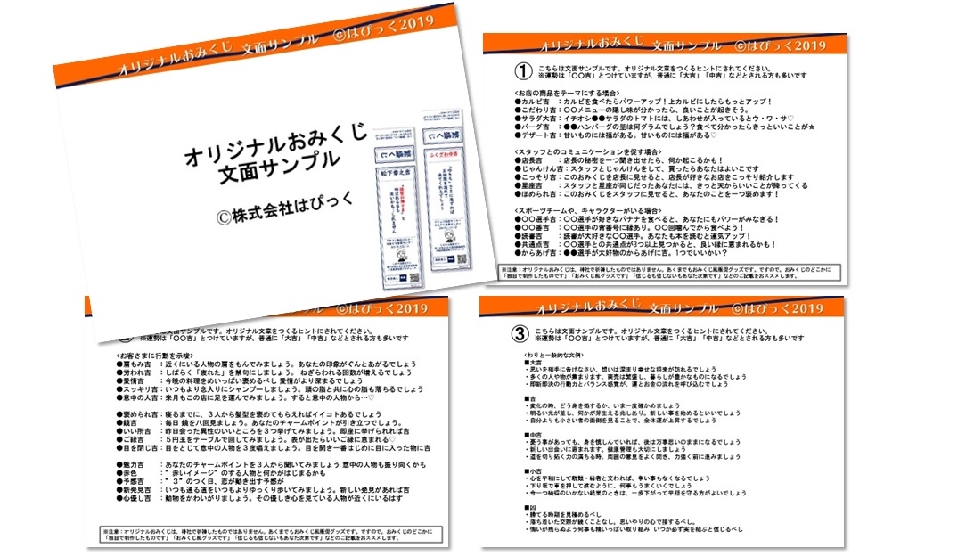 おみくじ文例集 250本 面白い・インパクトのあるパターン 無料で250の文例集PDFダウンロード可。現物サンプルもアナログ販促革命 株式会社はぴっく。
