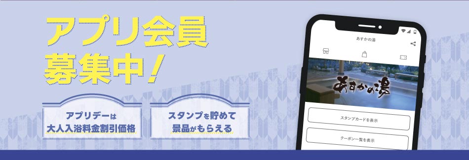 あすかアプリデー でお得にお風呂に入っちゃおう♨️ ▽▽▽ 7月29日 火▽▽▽ 明日は、 あすかアプリDAY でございますˊᵕˋ*ツクツク のアプリを取得して、お気に入り登録するだけで、大人入浴料金 600円 でご利用していただけます♨️ また、アプリ内の。