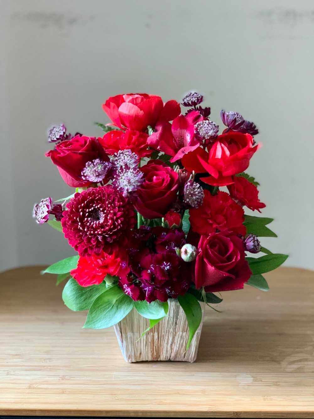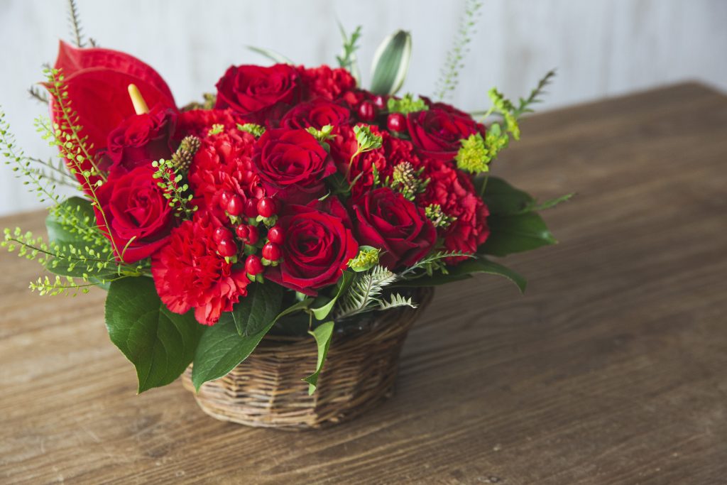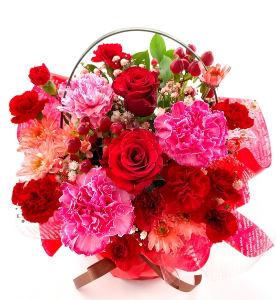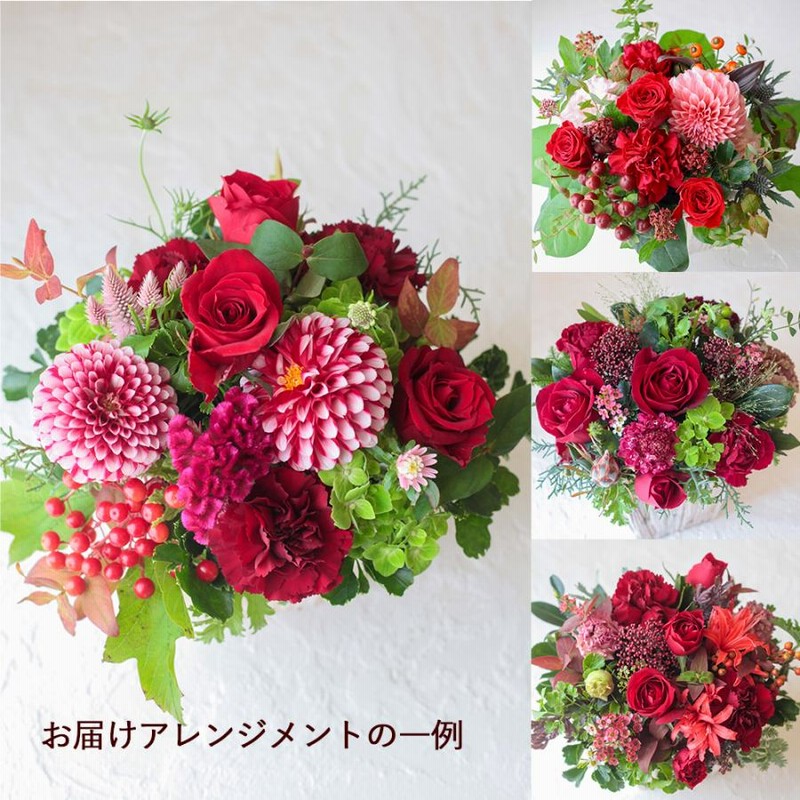還暦祝いの花>フラワーアレンジメント*キュートレッド* -フラワーズ・ドゥ -おしゃれなお花のギフトをお届けします。
