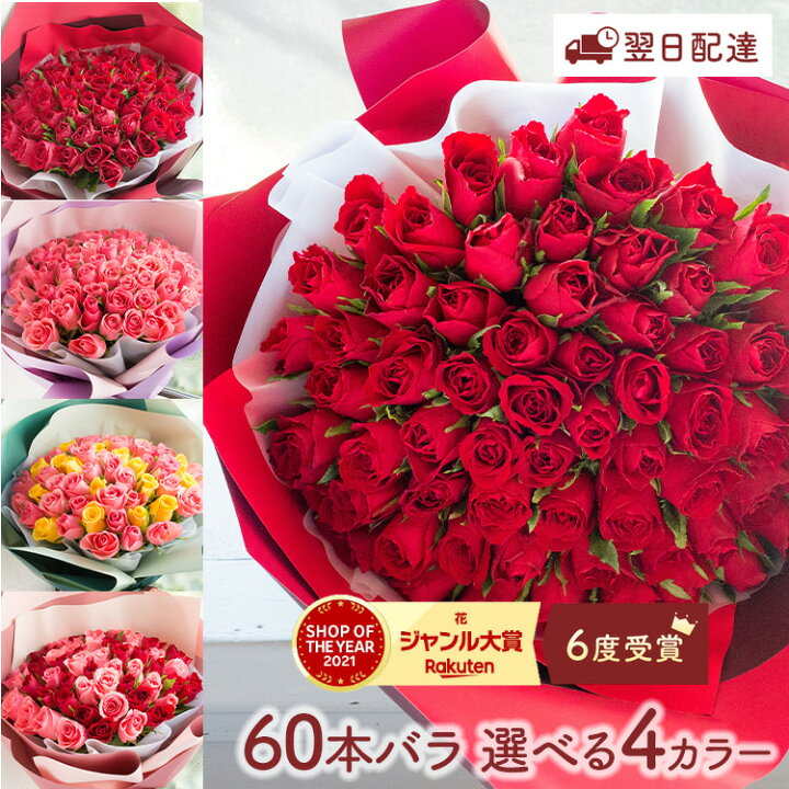 還暦祝い~60本のバラの花束 バラ60本 生花 花市場から直送 花束 バラ 産地厳選 お祝い お誕生日 還暦 60歳 おしゃれ サプライズ プレゼントメッセージカード無料 -COLORFUL Flowers 花のギフト専門店 - プレゼント&ギフトのギフトモール。