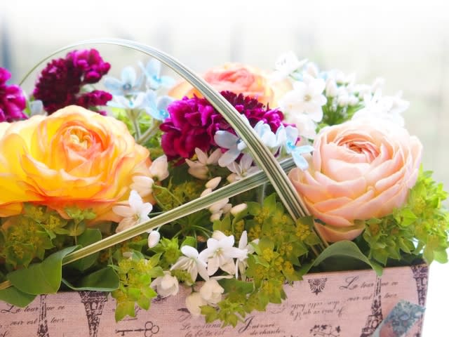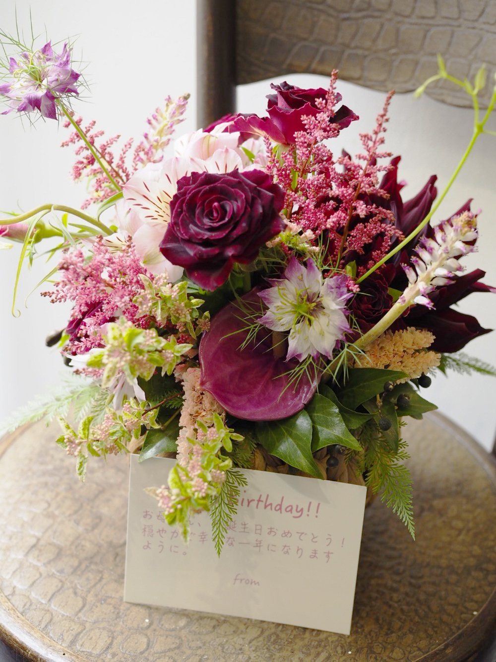 母の還暦祝いの花束花のある暮らしを贈る・ラグジュアリーフラワ。