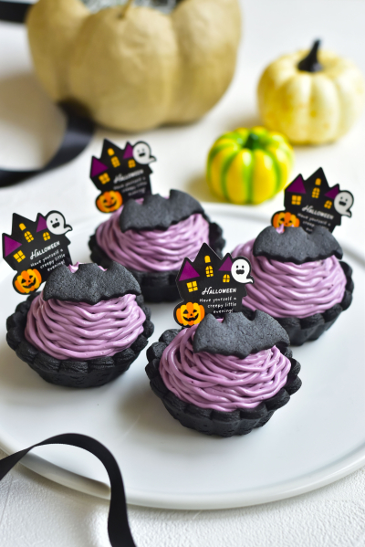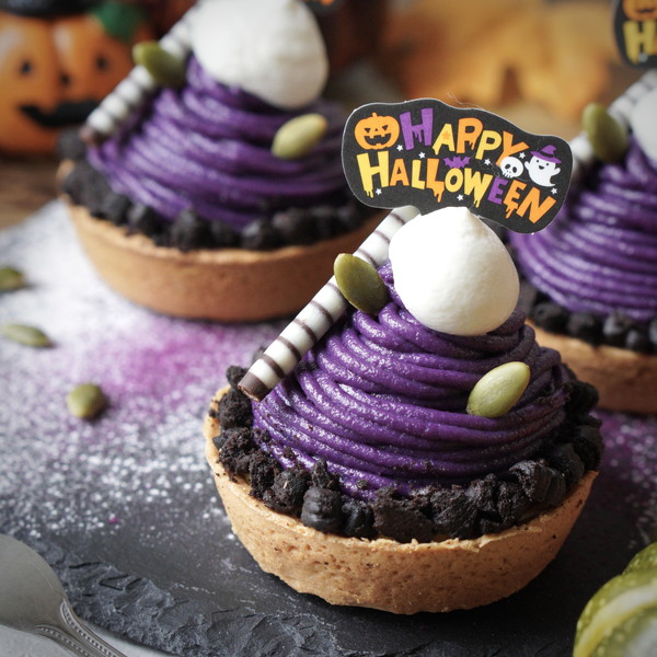 ハロウィンのケーキに紫芋のタルトPurple sweet potato tartHiroMaruの美味しいスイーツ。