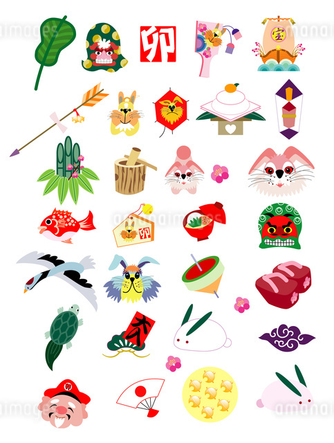 2023年賀状 うさぎとお正月のいろいろ イラスト素材7124991- フォトライブラリー photolibrary。