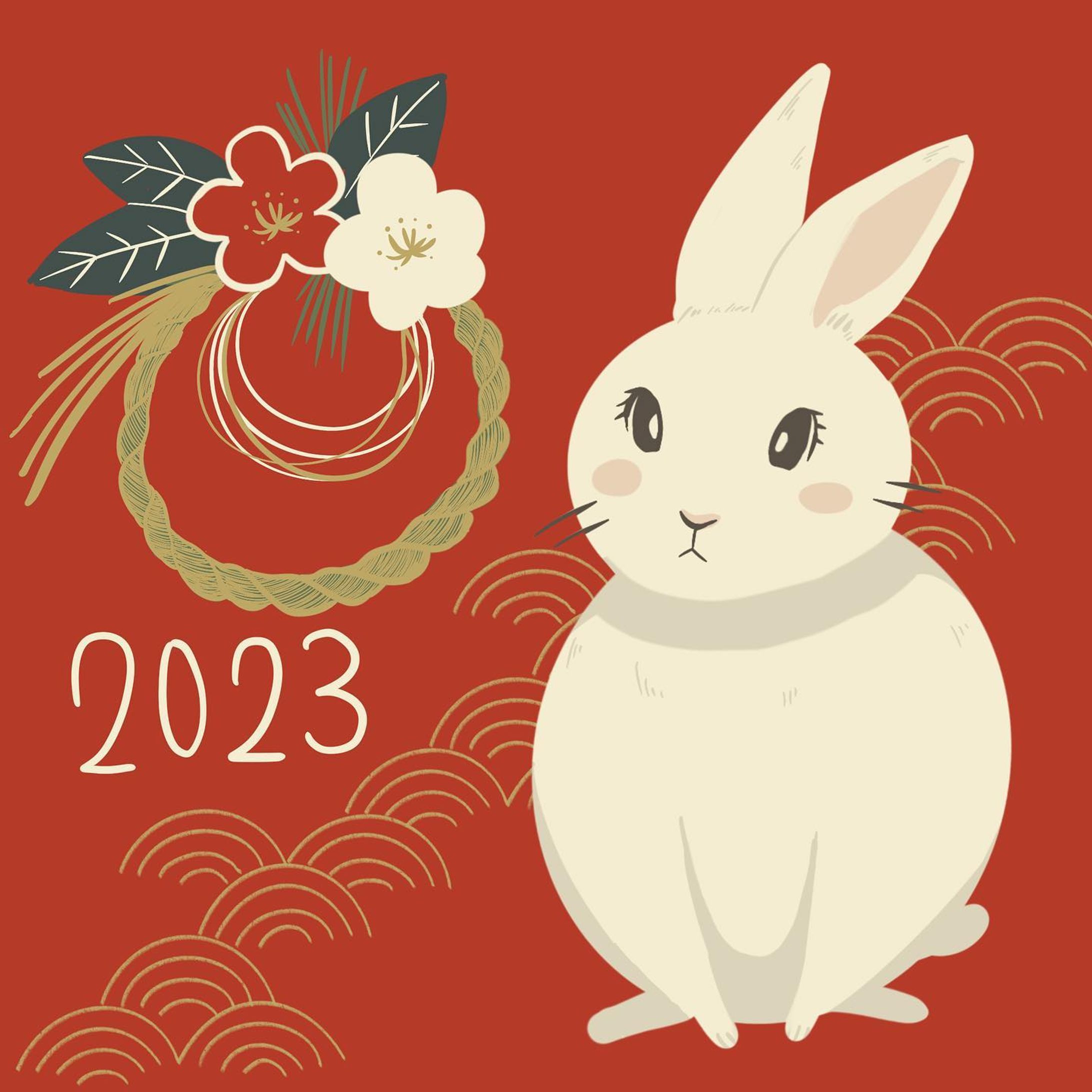 2023 卯年 ウサギ 年賀状に使える 正月 カード コピースペース イラスト 横型 テンプレート イラスト素材7013987-フォトライブラリ。