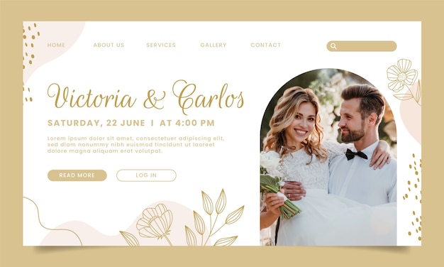 結婚祝い用のランディングページテンプレート無料ベクトル素材。