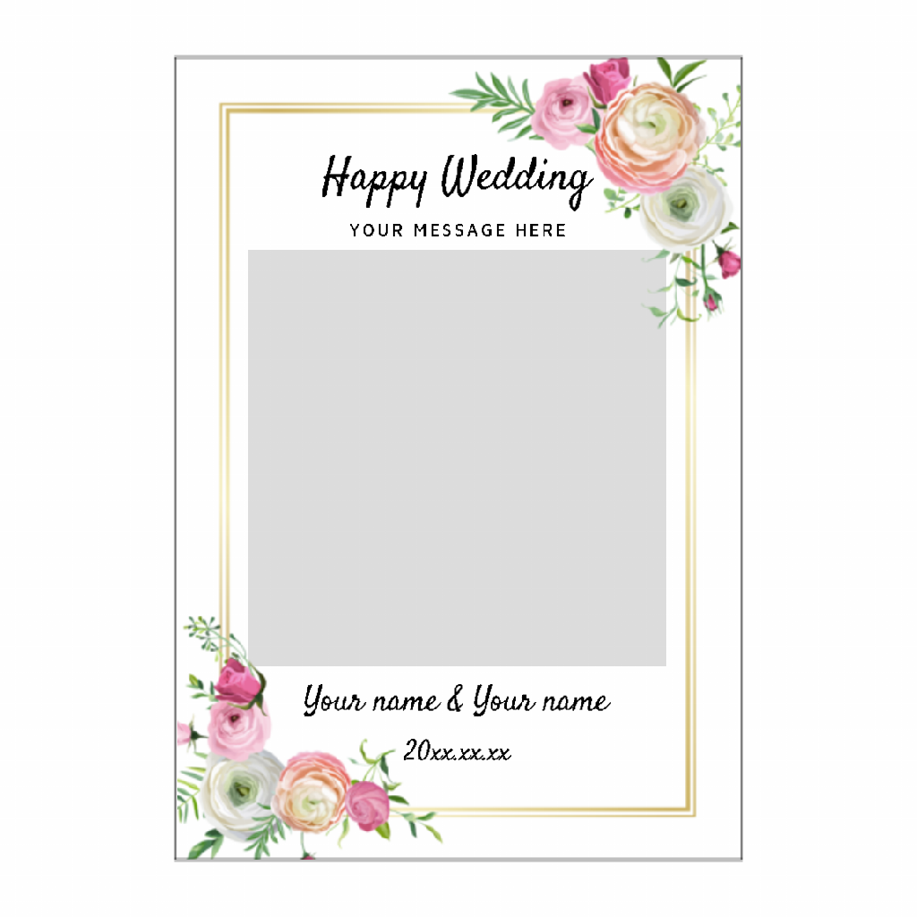 結婚祝い・報告はがきテンプレート「お花の飾り枠」ダウンロードかわいい無料はがきテンプレート はがき絵箱。