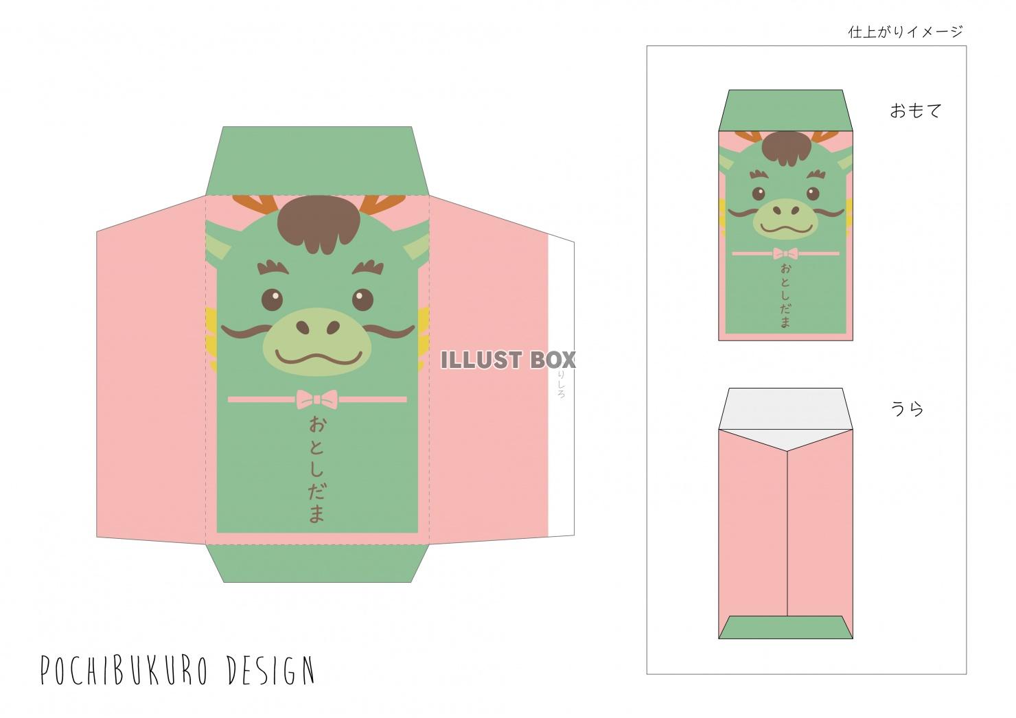辰年☆かわいいタツのお年玉袋☆ポチ袋:イラスト無料。