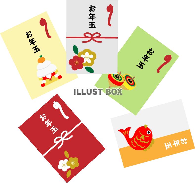 ポチ袋 お年玉袋 セット:イラスト無料。