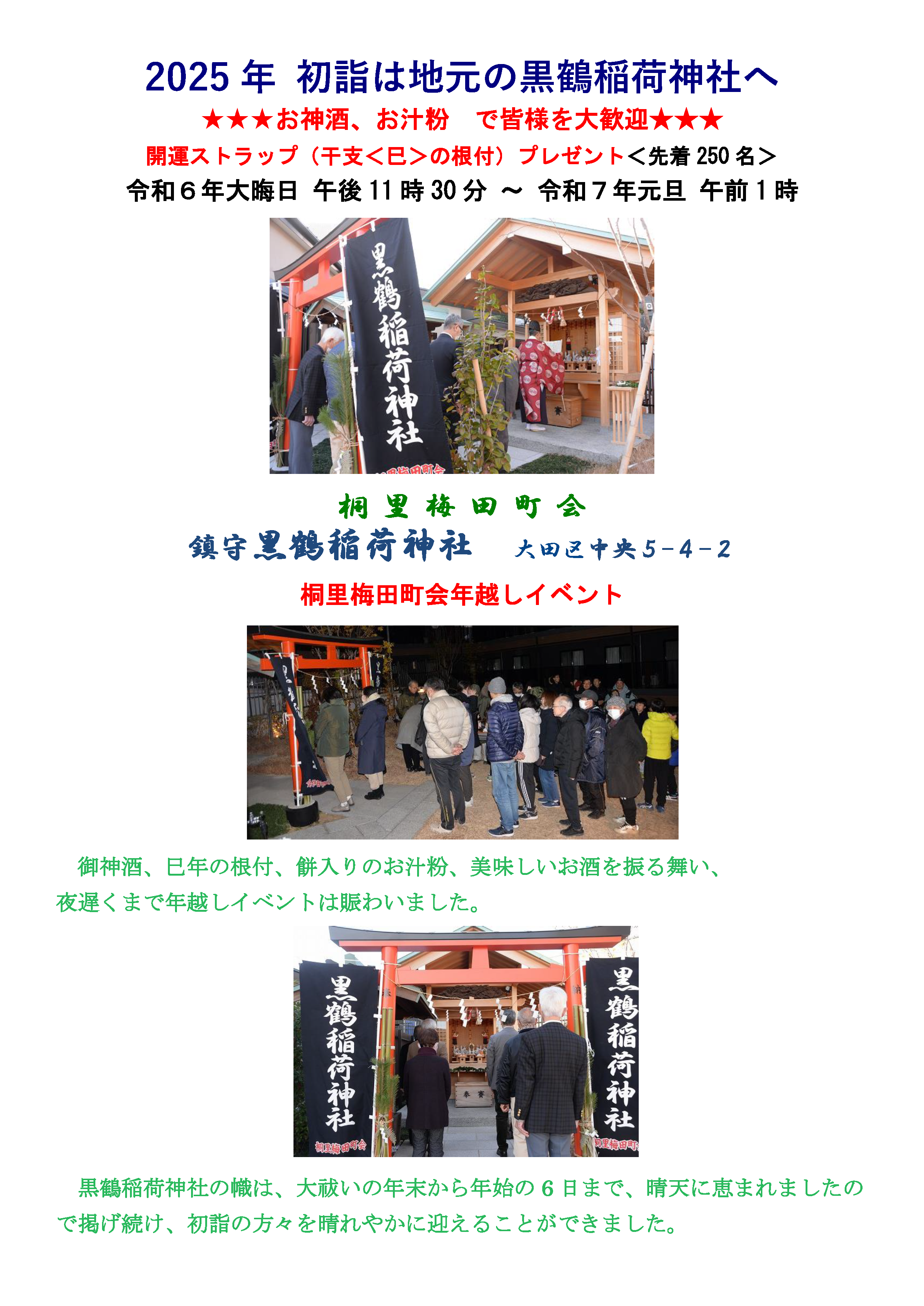 アズハイム大田中央 初詣は、ホームからすぐの「黒鶴稲荷神社」に行きました!公式 介護付有料老人ホームアズハイム。
