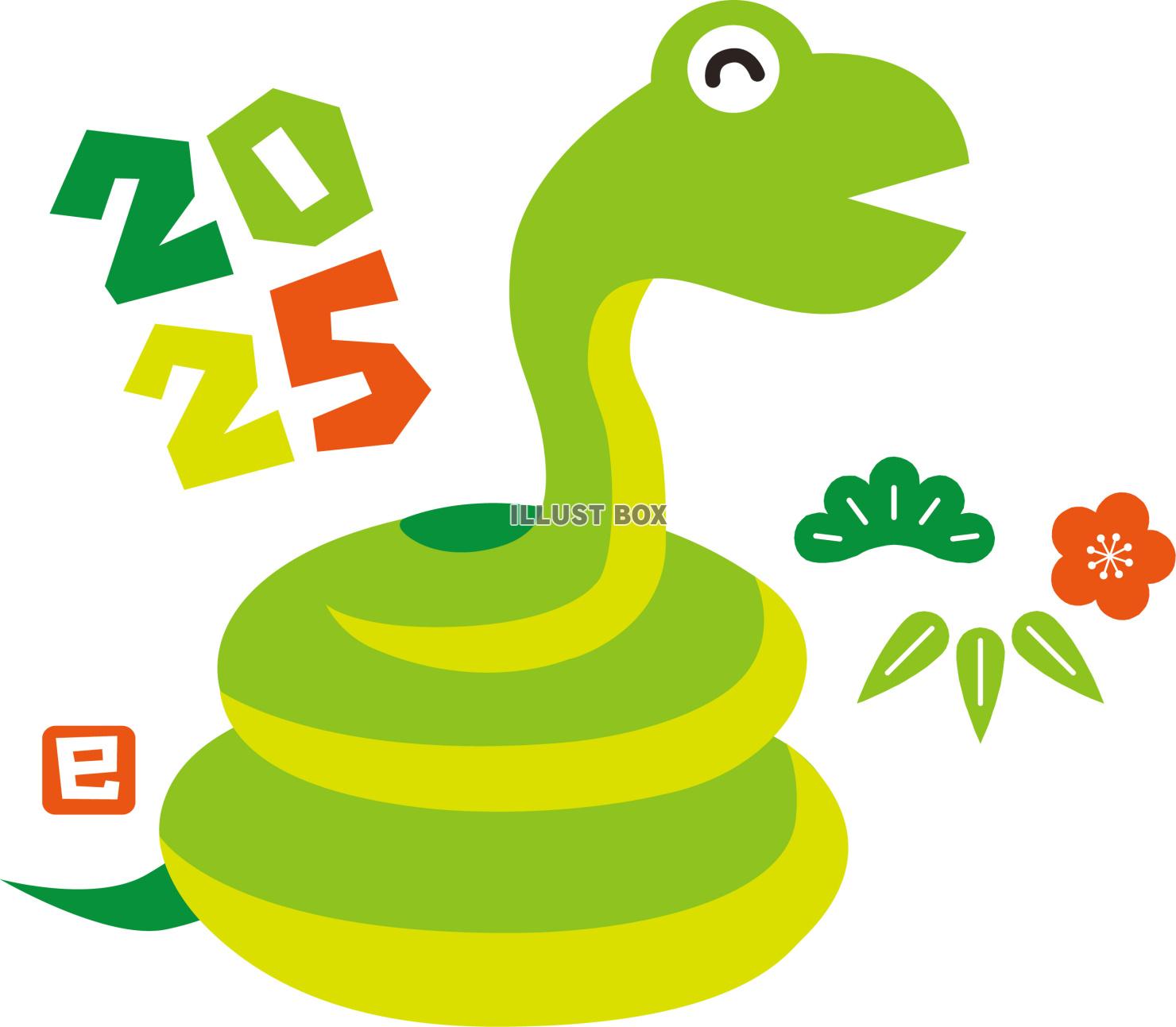 2025年 年賀状 無料イラスト素材「巳 み 」梅とへびダウンロードかわいいイラストとテンプレート 年賀素材館。