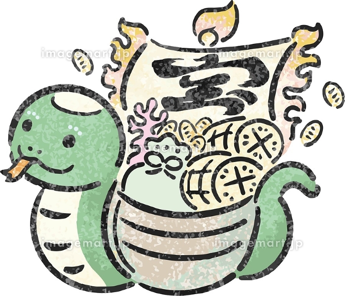 年賀状 年賀 2025 宝船 巳年 巳 蛇 へび年 墨絵 水彩 日本画 かわいい イラスト素材251967613- イメージマート。