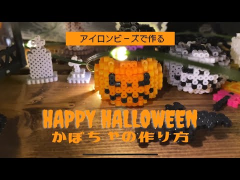 Happy Halloween!!☆アイロンビーズで作るかぼちゃ☆ハロウィンオーナメントにも☆モノトーンでもおしゃれ☆How to makepumpkins with perlerbeads。